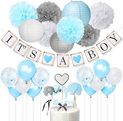 Joymemo Babyparty Deko Junge It S A Boy Girlande Elefant Kuchendeckel Blau Und Grey Konfetti Luftballons Blumenpuscheln Fur Taufe Geburtstag Baby Shower Amazon De Kuche Haushalt